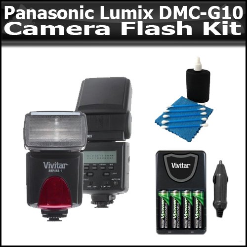 Flash Kit For The Panasonic Lumix DMC-G1, DMC-G10 12.1 MP Digital Camera Includes Vivitar DF-293 TTL LCD Bounce Zoom Swivel DSLR AF Flash + 4AA High Capacity Rechargeable NIMH Batteries And A/c D/c Rapid Charger + 3pc Lens Cleaning Kit Review B0046CFJ8Q